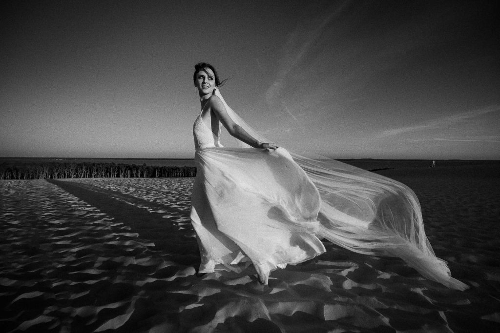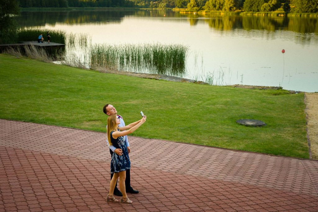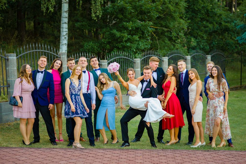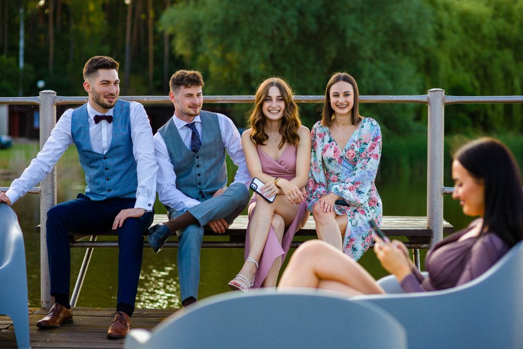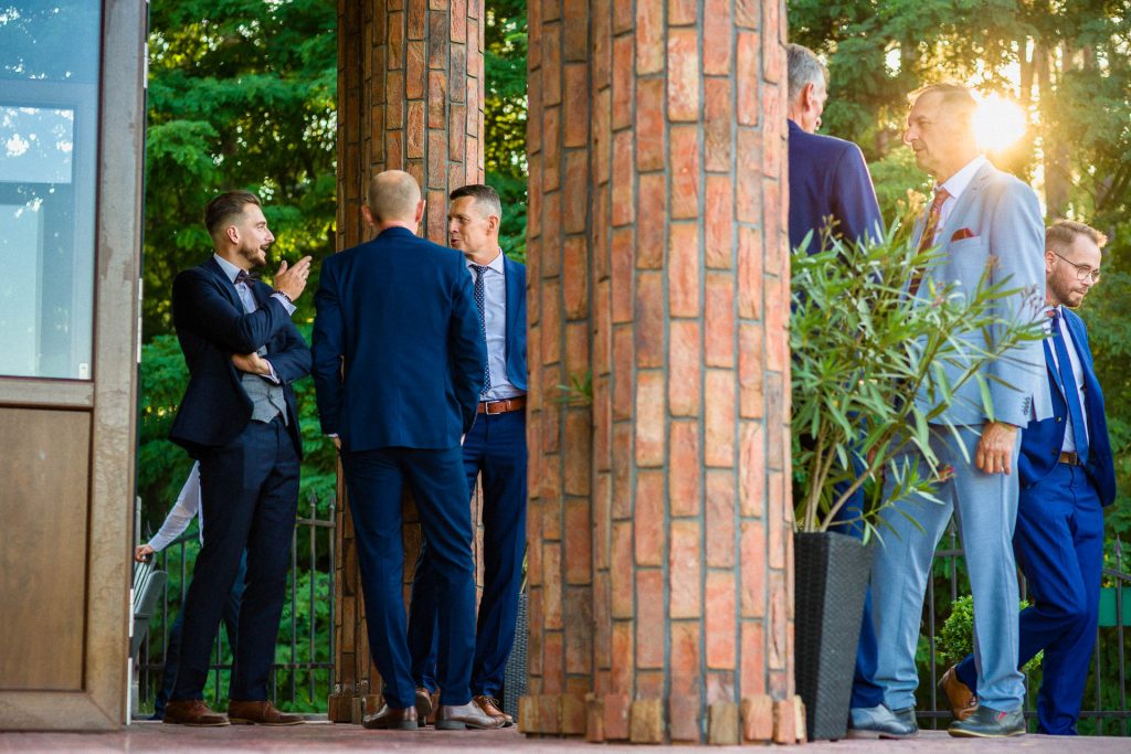 Wesela latem mają to do siebie, że goście do zachodu słońca dużo czasu spędzają na zewnątrz. No i ja się nie dziwię. Piękne niebo, ciepło, dużo śmiechu. Zespoły nie lubią, gdy jest pusty parkiet. A dla mnie to wymarzona sytuacja do reportażowych zdjęć gości, którzy dobrze się bawią w swoim towarzystwie.