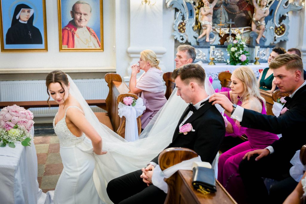 Kacper nie wiedział, jak wygląda suknia. Z Wiktorią spotkali się dopiero pod ołtarzem. I dlatego tak uwielbiam swoją pracę, że mogę być świadkiem tych wszystkich wzruszających chwil. No kto ma lepiej, niż ja? 🙂