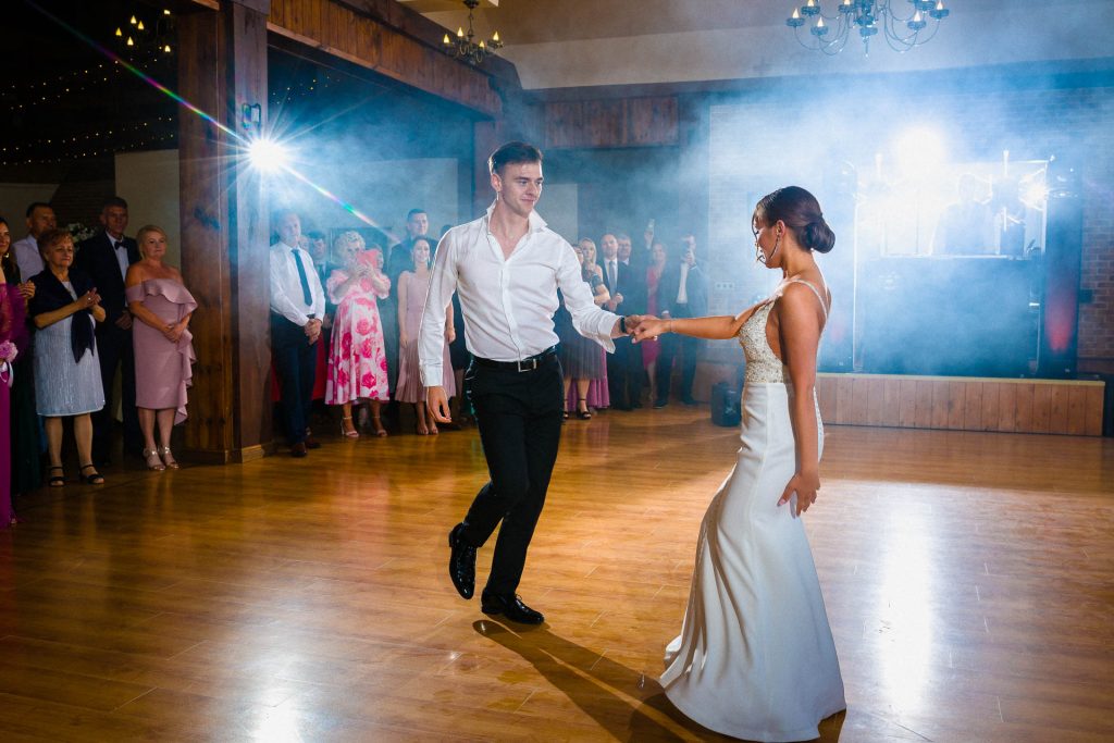 Wesele na sali w Ostrówce to był już sztos! Kacper jest wybitnym tancerzem. Widzieliście kiedyś na żywo pokazowy taniec z kultowego Dirty Dancing? No a ja tak 🙂 Z Wiktorią dali taki popis, że szczękę zbierałem z między potłuczonych wcześniej kieliszków.