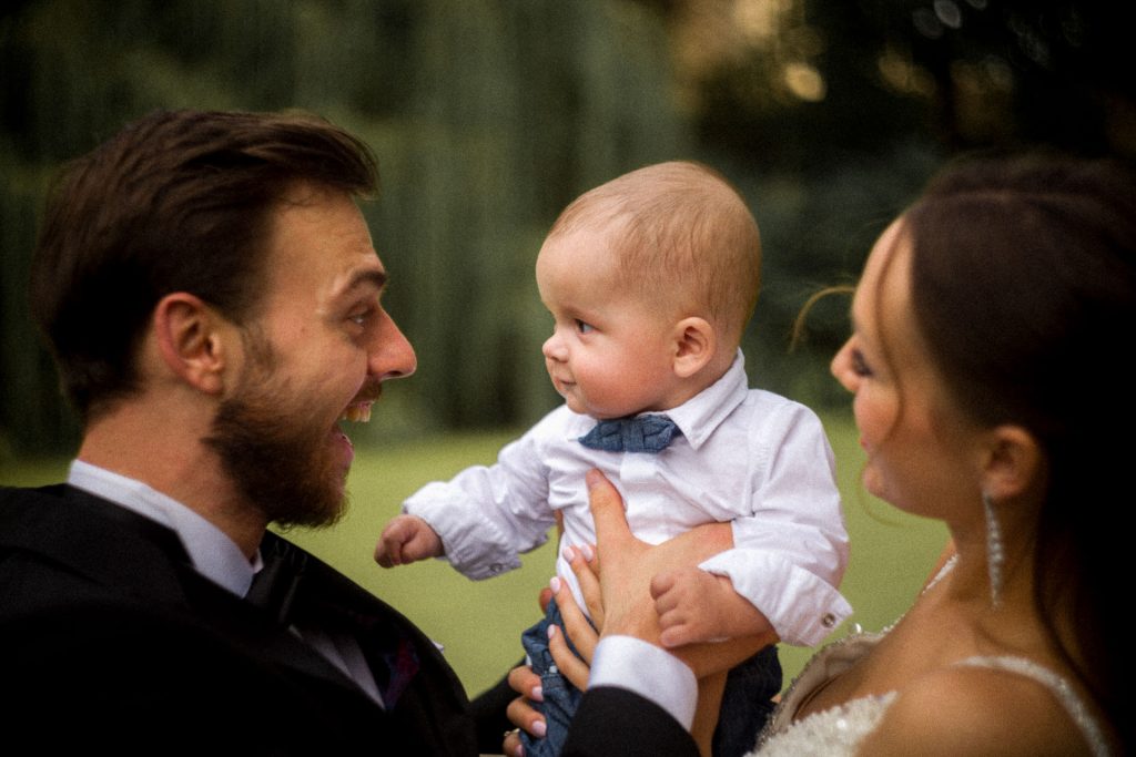 A po ponad roku spotkaliśmy się na sesji rodzinno- plenerowej. Do ekipy dołączył maleńki Gabryś. Uśmiechnięty od ucha do ucha. Przystojniak taki, że za kilkanaście lat będą o nim pisali „młodsza kopia Brada Pitta”. Suknia Wiktorii pasowała jak w dniu ślubu. Kacper wyglądał, jakby dopiero od krawca wyszedł.