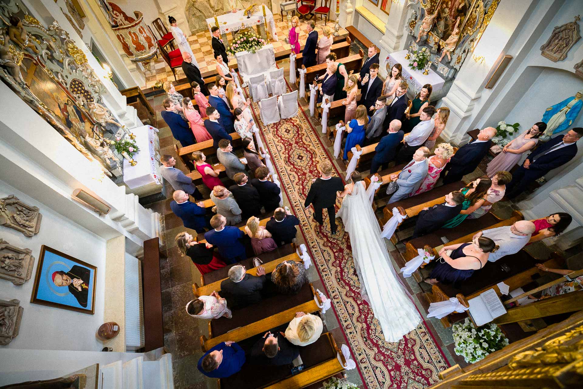 Ślub odbył się w Pakoskiej Kalwarii koło Inowrocławia. Prowadzą go franciszkanie. Boże, jacy to fajni ludzie! Idę do zakrystii, żeby pokazać upoważnienie do fotografowania uroczystości w Kościele. A tu od zakonnika słyszę, że on nic oglądać nie chce. I żebym tylko porządne zdjęcia zrobił. Uwielbiam takich pozytywnych ludzi 🙂