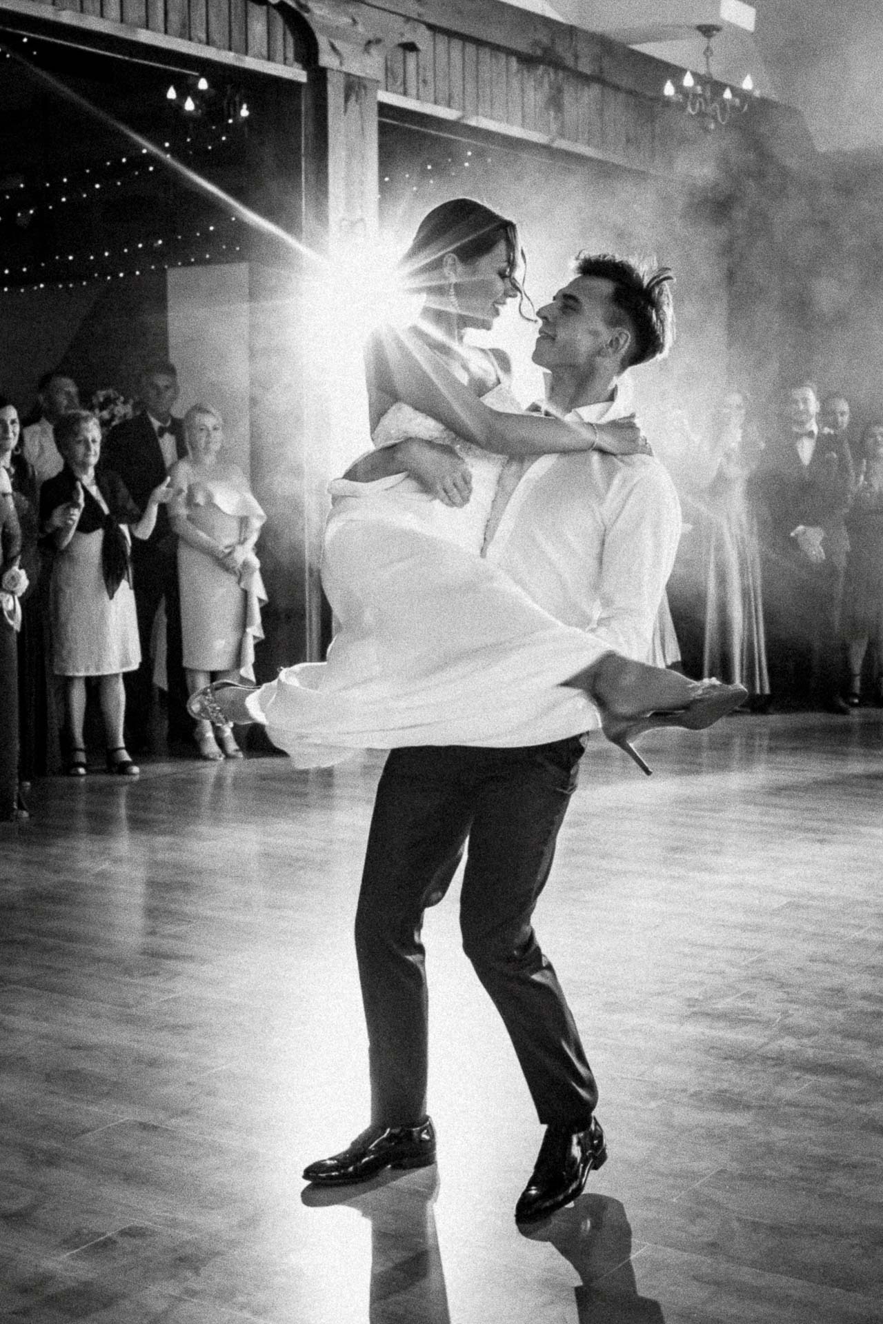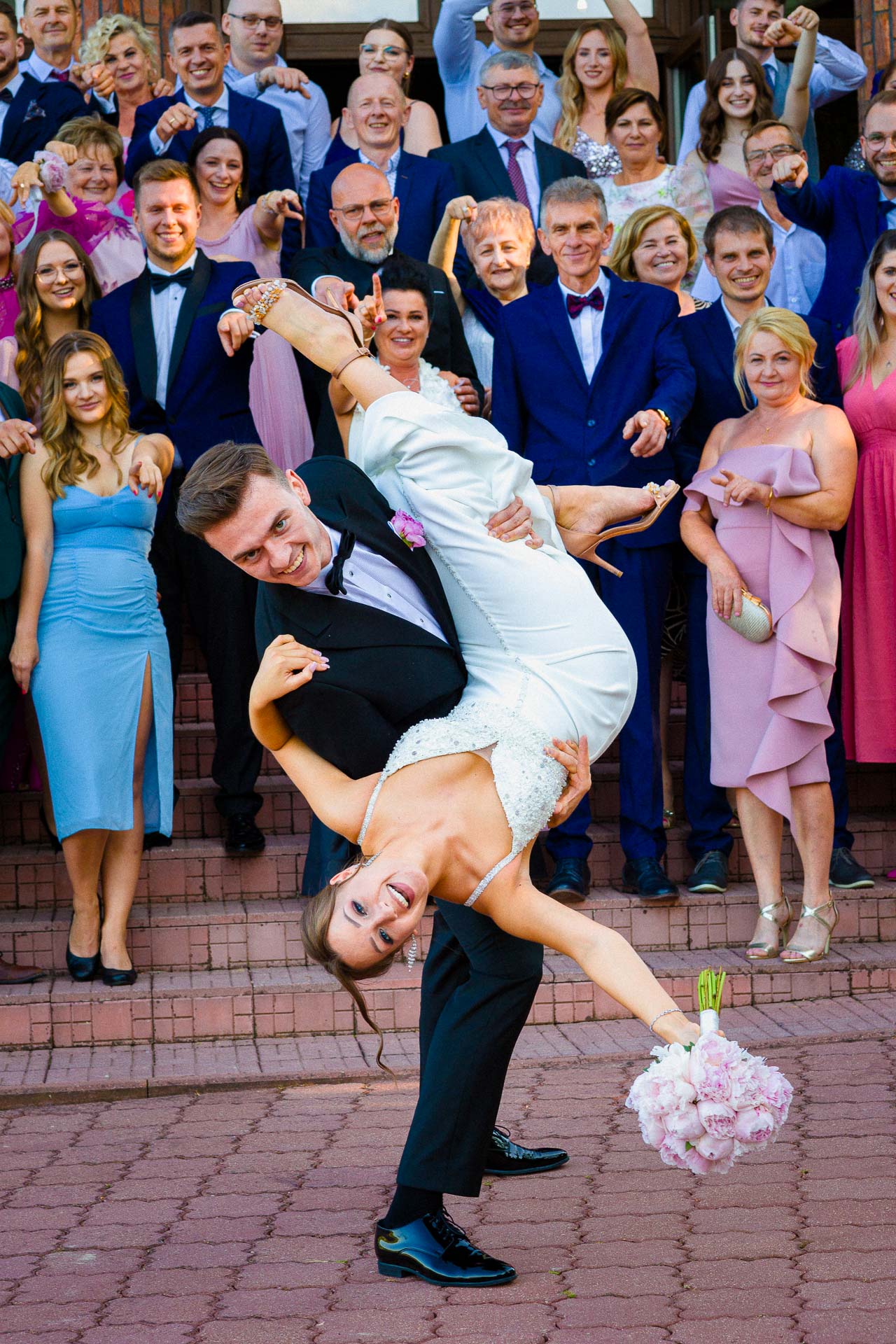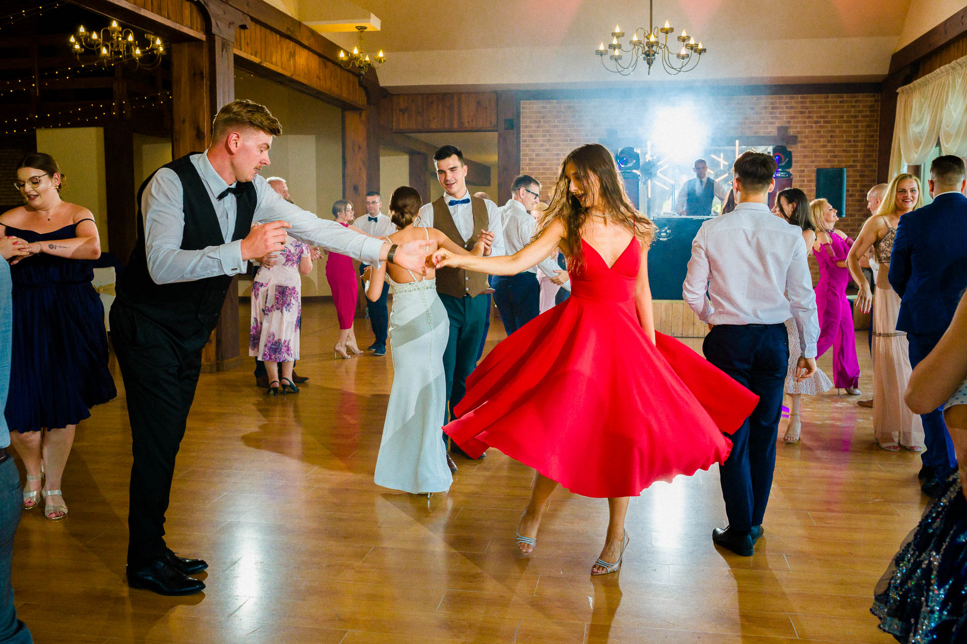 Wesele na sali w Ostrówce to był już sztos! Kacper jest wybitnym tancerzem. Widzieliście kiedyś na żywo pokazowy taniec z kultowego Dirty Dancing? No a ja tak 🙂 Z Wiktorią dali taki popis, że szczękę zbierałem z między potłuczonych wcześniej kieliszków.