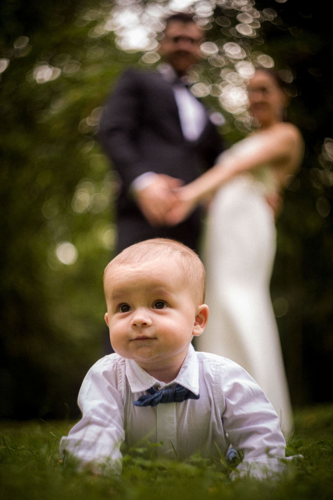 A po ponad roku spotkaliśmy się na sesji rodzinno- plenerowej. Do ekipy dołączył maleńki Gabryś. Uśmiechnięty od ucha do ucha. Przystojniak taki, że za kilkanaście lat będą o nim pisali „młodsza kopia Brada Pitta”. Suknia Wiktorii pasowała jak w dniu ślubu. Kacper wyglądał, jakby dopiero od krawca wyszedł.